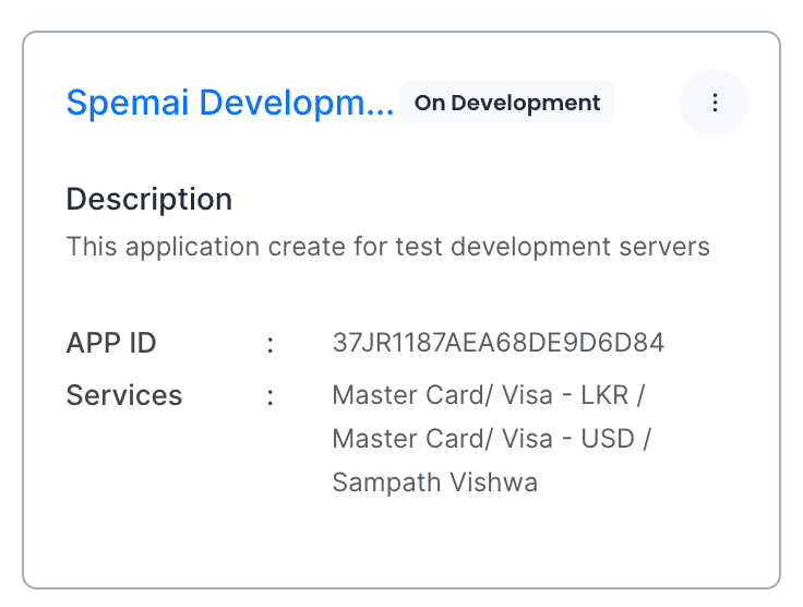 URL: https://merchant.onepay.lk/pages/developer-configurations/ipg-apps Click the three-dot menu icon to view the developer configuration details.