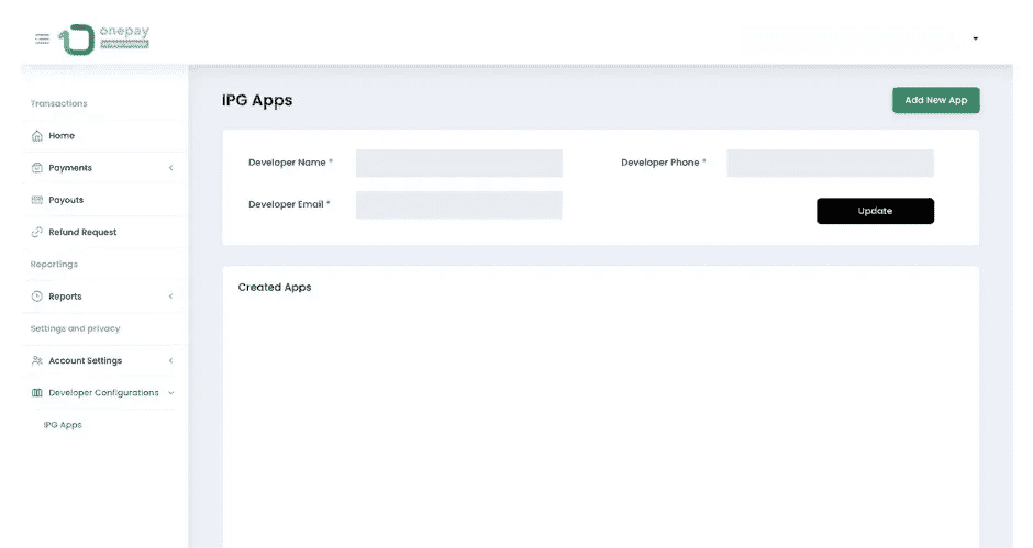 In the sidebar, navigate to "Developer Configurations" and select "IPG Apps"