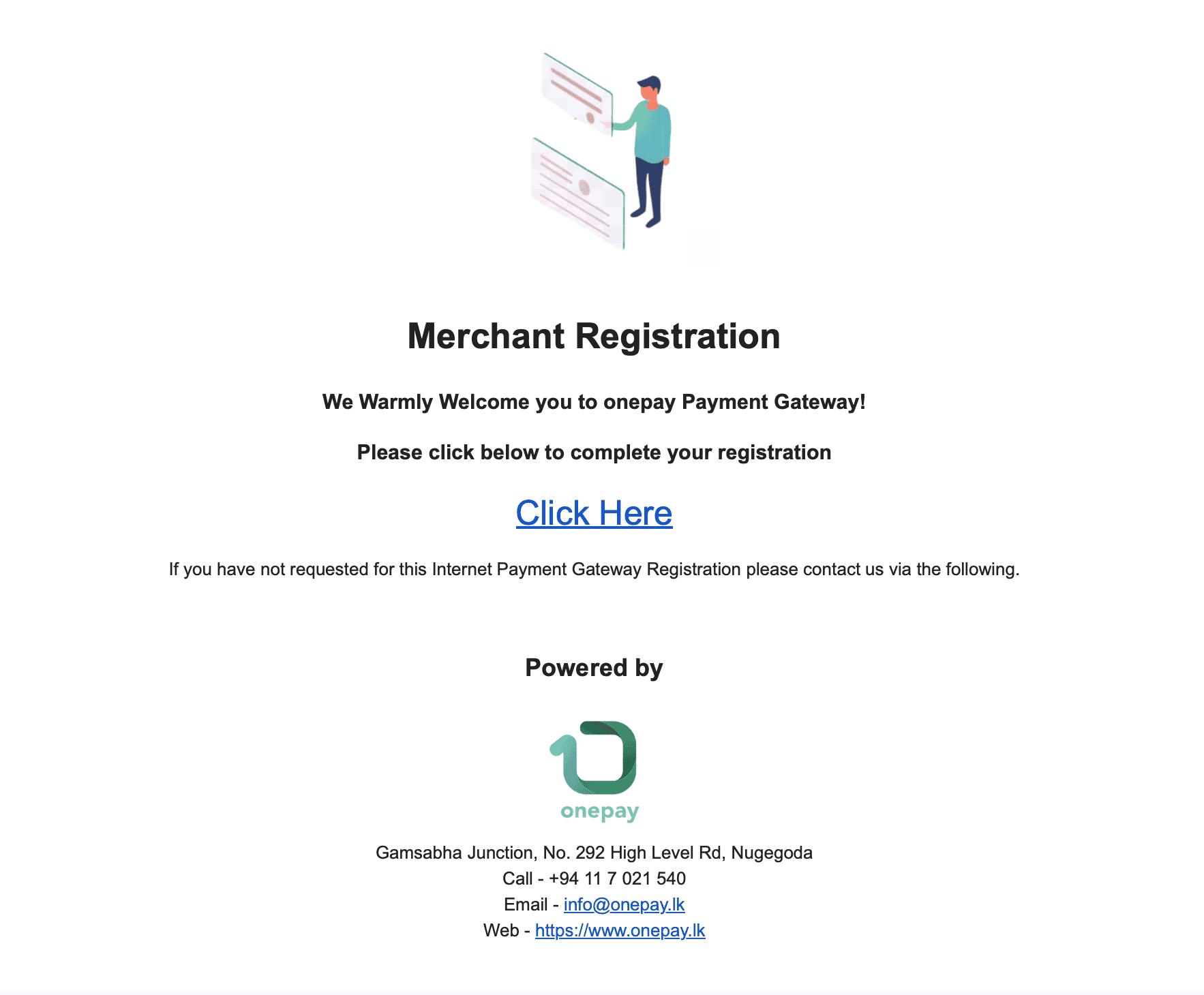You would have received an email from noreply@onepay.lk to change the password. Please check your spam folder if you cannot find it in your inbox.