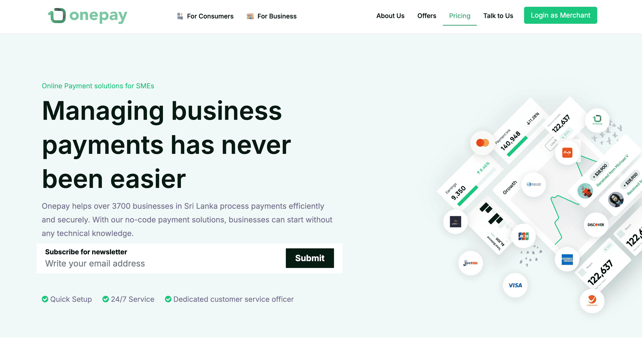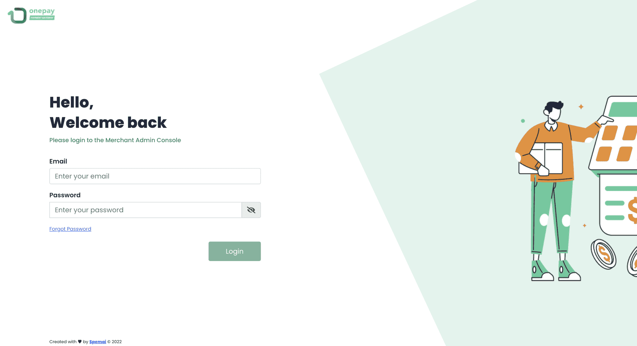 Login to the Onepay website to access the merchant portal for one-time configuration to enable payment acceptance and package updates.