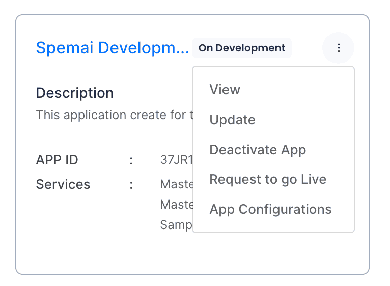 Once you have completed the integration and testing, you can request to go live. Click the three-dot menu icon to view the developer configuration details, then click "Request to Go Live"