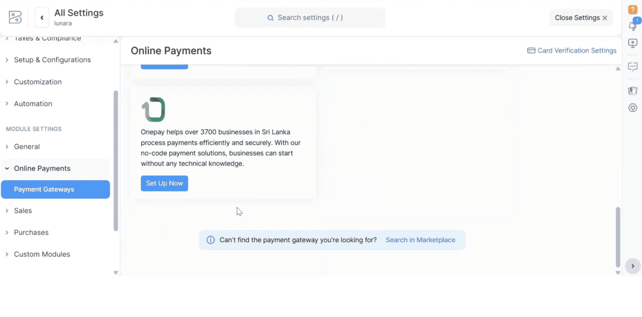 This guide walks you through installing and configuring the OnePay payment gateway extension for Zoho Books or Zoho Inventory, so your customers can make secure card payments directly through your invoices.