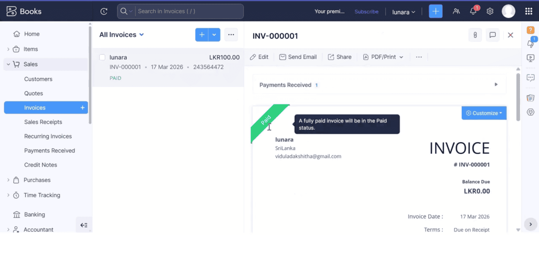 Once your customer successfully completes the payment through OnePay, Zoho automatically updates the following: